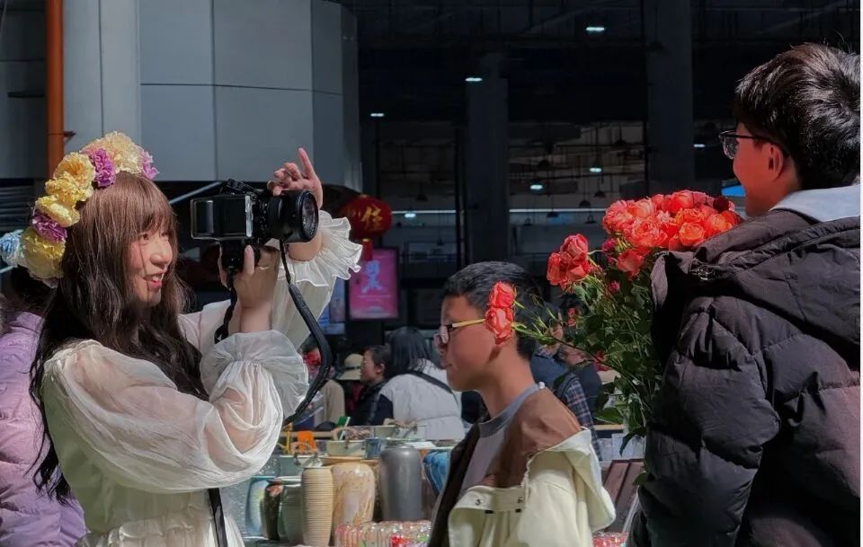 游客在斗南花市打卡拍照,留下与春天的合影