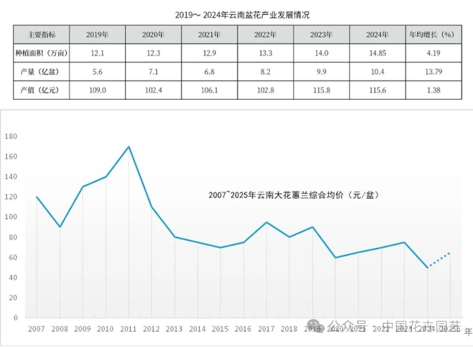 通过走访云南多家盆花生产企业,多次开展盆花销售市场调研,并与部分经销商进行沟通,定期了解对盆花行情走势,笔者得出调查结论:云南盆花产业在全国占据重要地位,尤其是大花蕙兰、绣球、盆栽玫瑰等品类生产规模领先全国,具有较高的市场话语权。虽然面临市场低迷、电商低价竞争等挑战,但通过技术创新、管理模式创新,以及核心技术集成和推广应用,并提前布局未来潜力品种,强化营销方式,云南盆花产业前景可期,投资空间大。