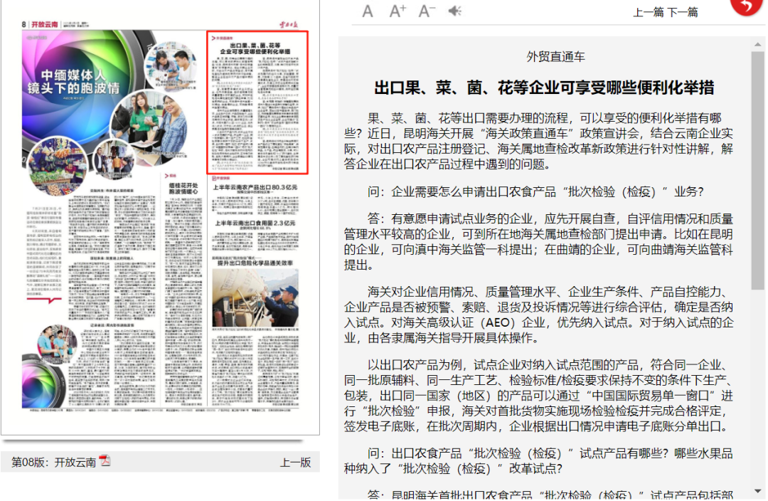 《云南日报》|出口果、菜、菌、花等企业可享受哪些便利化举措