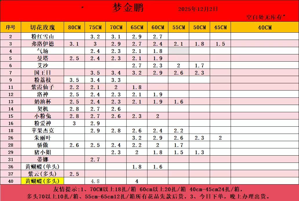 注:小量订购最低多品种混搭满6KG(10扎花左右),装一箱发货