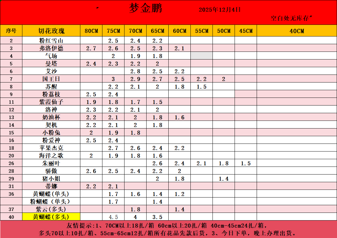 注:小量订购最低多品种混搭满6KG(10扎花左右),装一箱发货