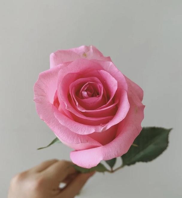 苏醒玫瑰属于粉玫瑰中的水粉系,桃色从花心和花瓣底部晕染出来,像是少女白净面庞上醉人的红晕。