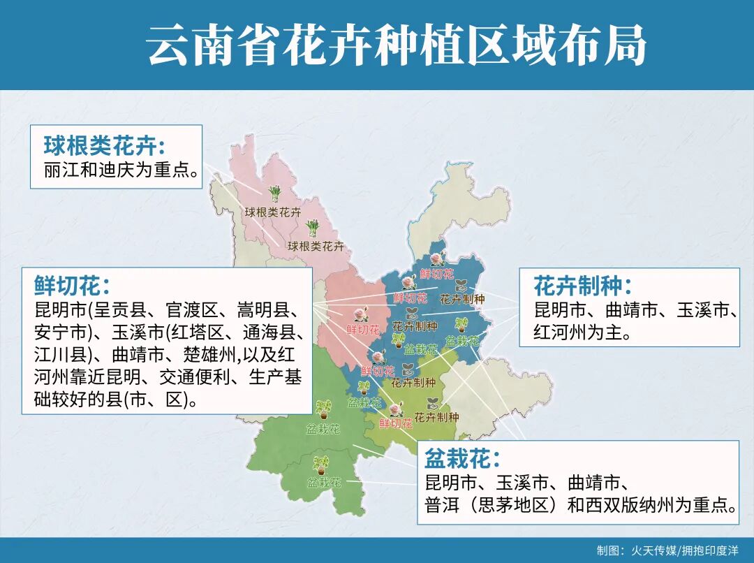 政通人和,出台《云南省支持种业振兴若干政策措施》实施种业振兴行动强力支撑,新品种申请与授权量全国第一,牢牢掌握产业话语权。昆明花拍中心(KIFA)的兜底机制,也让花农底气十足。