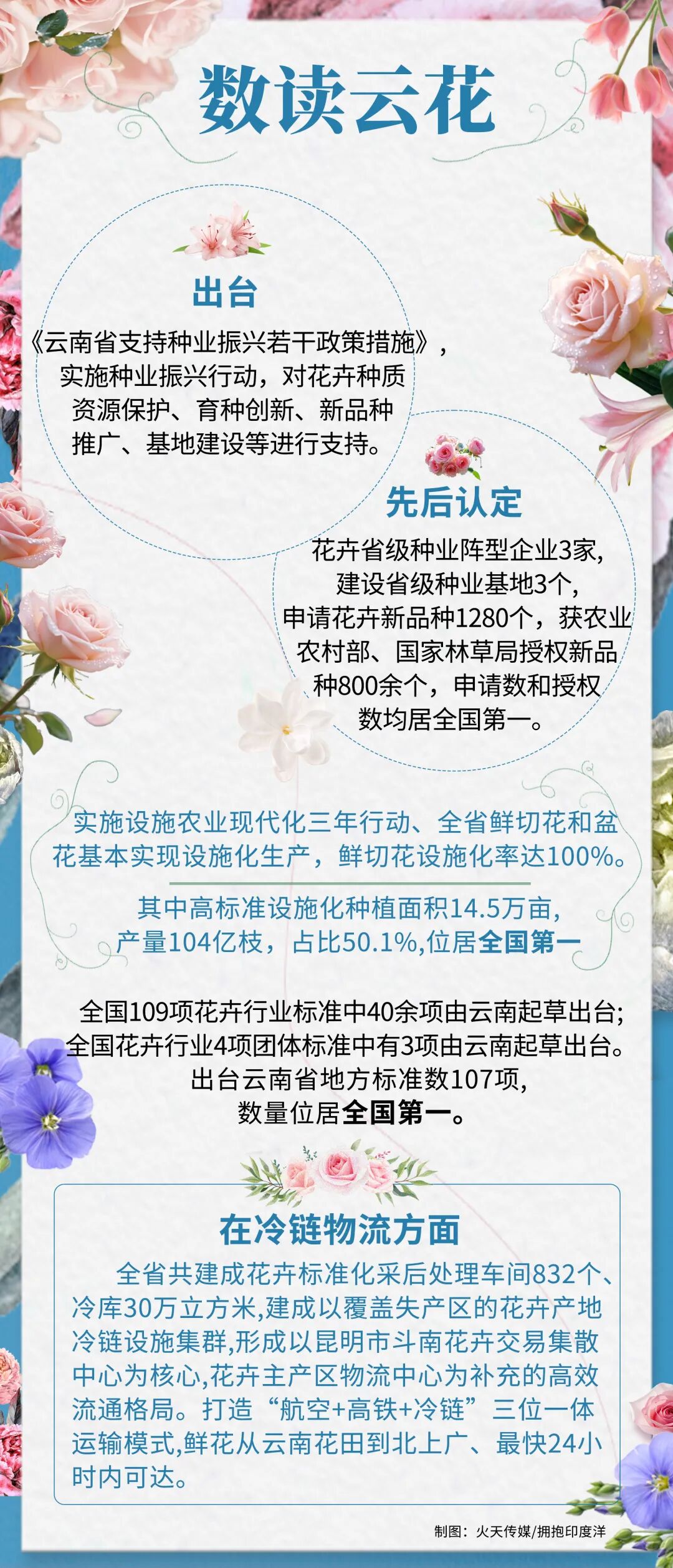 卓越商策,云南鲜切花设施化率10%,高标准种植面积、产量全国第一;还牵头制定全国超40%行业标准,与华为、中国农大共建“数字云花”,让产业智慧升级。