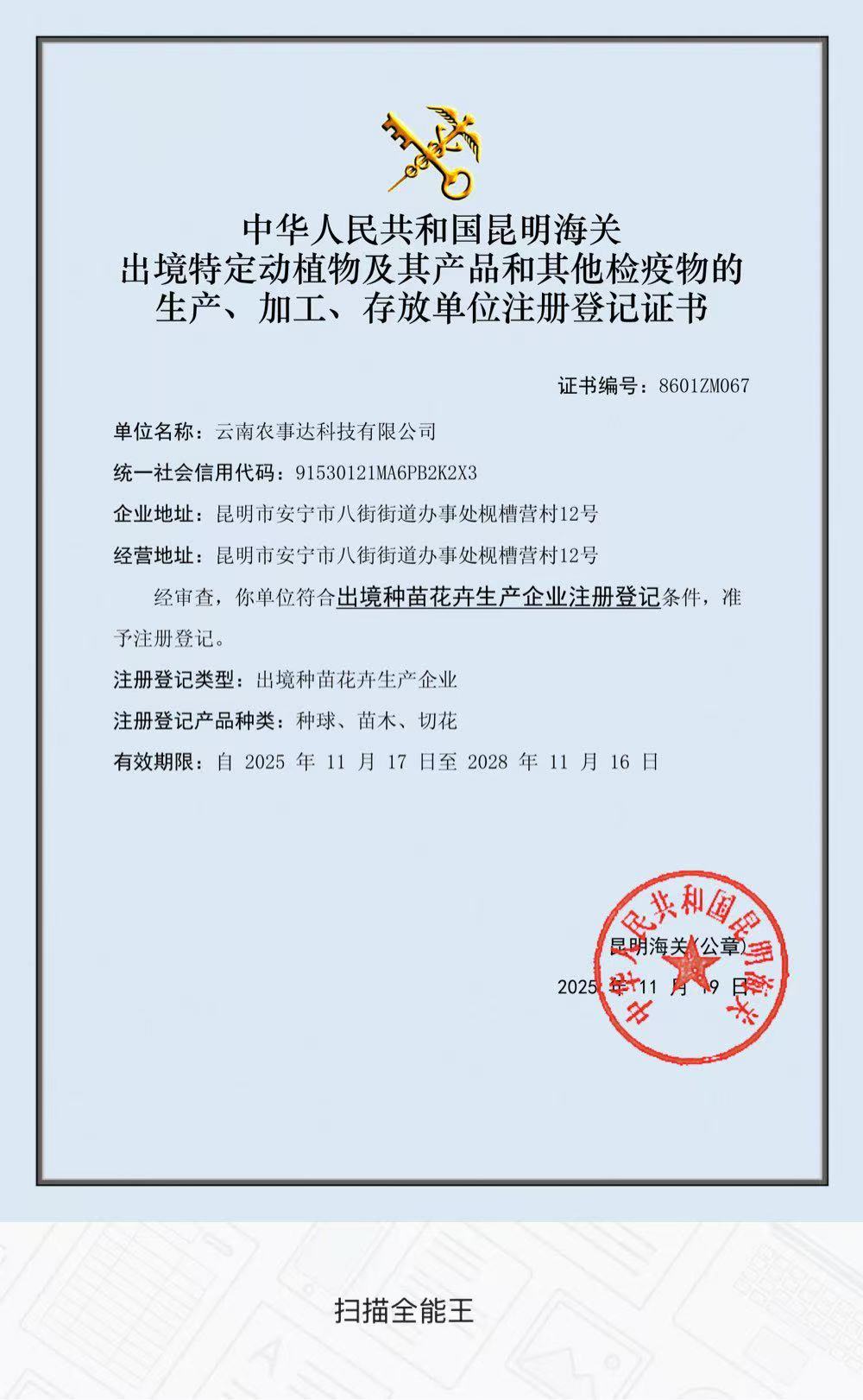 云南农事达科技有限公司法人是团级军转干部创业企业!公司创业导师刘俊峰1991年上海开花店,2000年斗南开花卉贸易公司,是2022年花拍中心第一批聘请专家,在深耕中国花卉产业30多年,植根云南花卉产业20多年的基础上,整合产业资源,服务花农、服务花商!形成产供销一条龙的公司服务体系。
