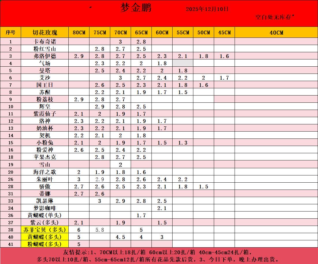 注:小量订购最低多品种混搭满6KG(10扎花左右),装一箱发货